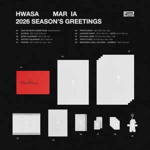 [뉴스파이어] 가수 화사가 시즌 그리팅을 출시한다.화사는 2일 오후 2시 화사 공식 팬 커뮤니티와 에버라인을 통해 ‘HWASA 2026 SEASON’S GREETINGS [MAR IA]’의 예약 판매를 시작했다.이번 시즌 그리팅은 다채로운 구성으로 소장 욕구를 불러일으킬 전망이다.화사의 다양한 매력을 담은 포토북을 비롯해 데스크 캘린더, 포스터 캘린더, 레더 다이어리, 포토카드, 키링 등 실용성과 비주얼을 모두 갖춘 구성으로 팬들의 취향을 저격할 것으로 기대를 모은다.화사는 배우 박정민과 ‘제46회 청룡영화상’축하무대 후 ‘Good