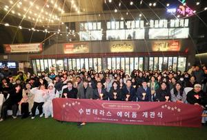 [뉴스파이어] 서대문구는 홍제폭포 일대의 겨울 야경을 더욱 아름답게 밝히고 방문객에게 따뜻함을 전하기 위해 최근 카페폭포 앞 수변테라스에서 ‘2025년 홍제폭포 에어돔 개관식’을 개최했다고 8일 밝혔다.이날 크리스마스트리, 에어돔 조명, 수변 라인 조명이 카운트다운과 함께 일제히 점등되며 홍제폭포 일대가 ‘겨울빛 파노라마’의 장관을 연출했다.점등 순간 참석자들이 응원봉을 흔들며 함께 참여해 빛으로 물결치는 장면이 펼쳐졌다.점등식 후에는 아카펠라 팀 ‘보이스토이’가 무대에 올라 감미로운 캐럴 등을 들려주며 겨울밤 분위기를 한층 훈훈하